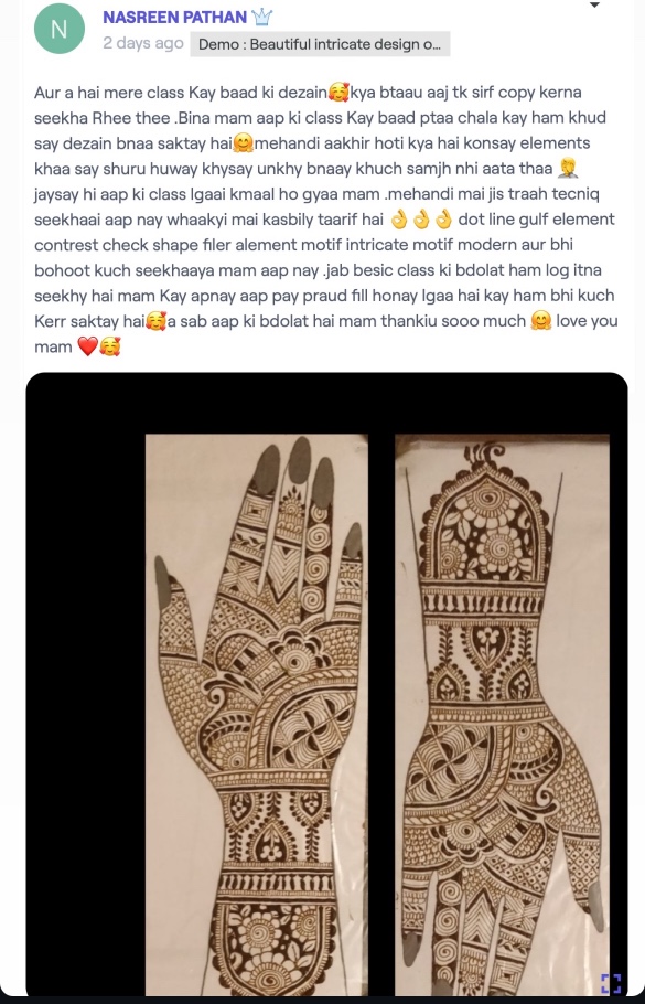 This course has been designed keeping beginer in mind. It work on fundamentals and tecniques of mehndi art. If you are somone who wants to explore this art in depth or just as hobby to start with then this course is for you. If you are someone who wants to strengthen your foundation work and clear all basic weaknesses then this course is for you. If you are someone who have attended many courses from basic to advance but still feels your work is lacking something then this course is indeed for you because in your hassle to learn everything you have forgotten to learn basics.