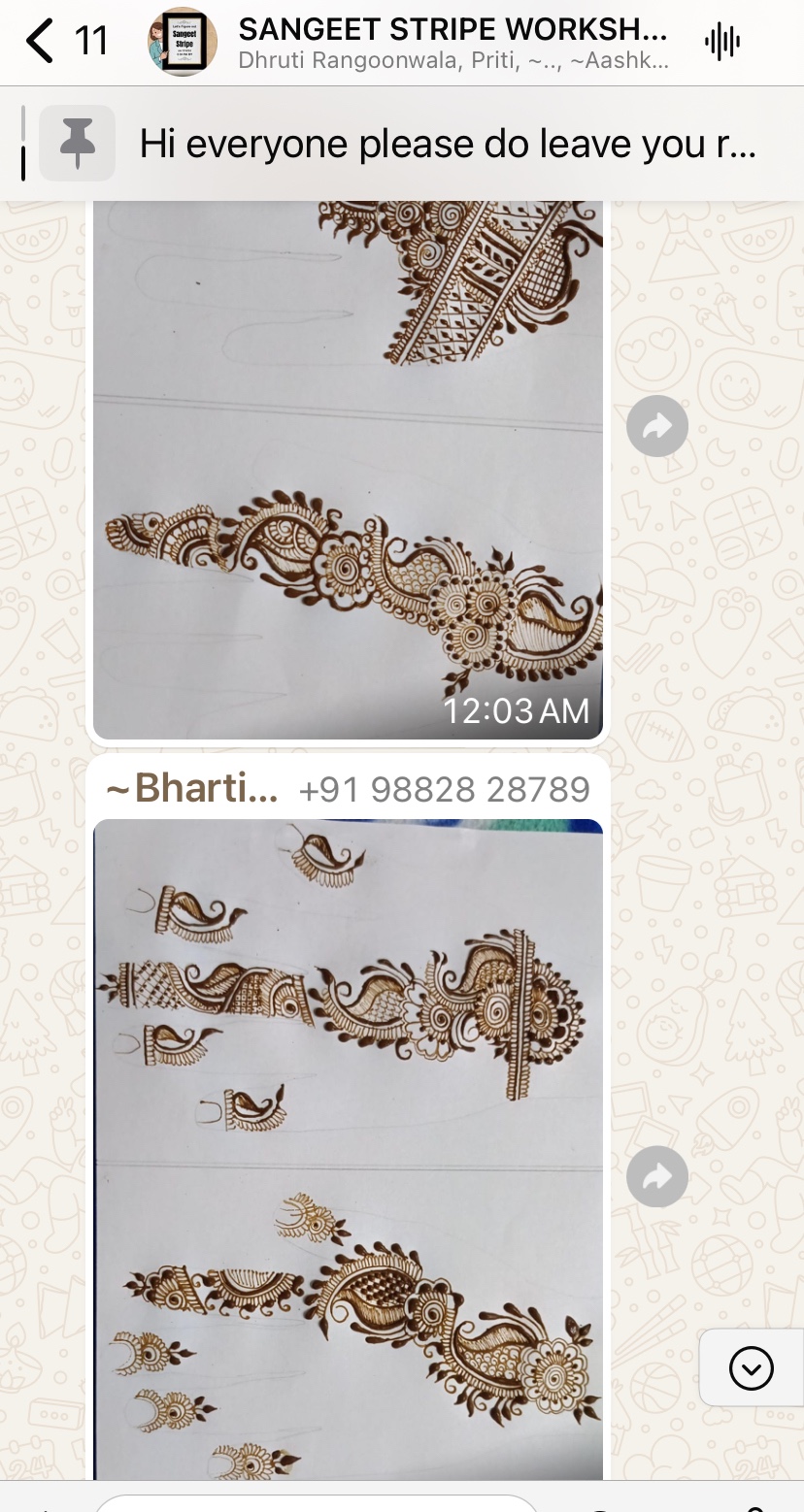 Workshop teaching Sangeet and festive arabic stripe. I have few tricks that have helped me achieve creative 12 to 15 stripes per hour. specially in outside india for festive , party, sangeet mehendi is charged per hour and customer book somehow who can do fast but good work that is value for money. Even you charge per design then doing fast mehndi could make you more money. so this class is helpful for all.
